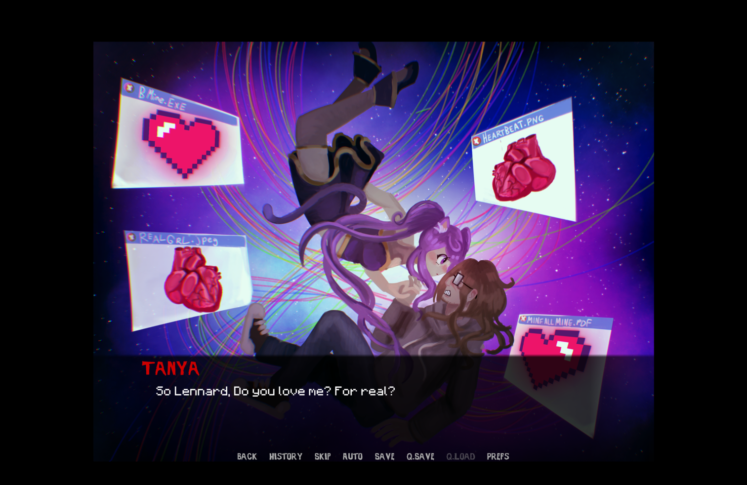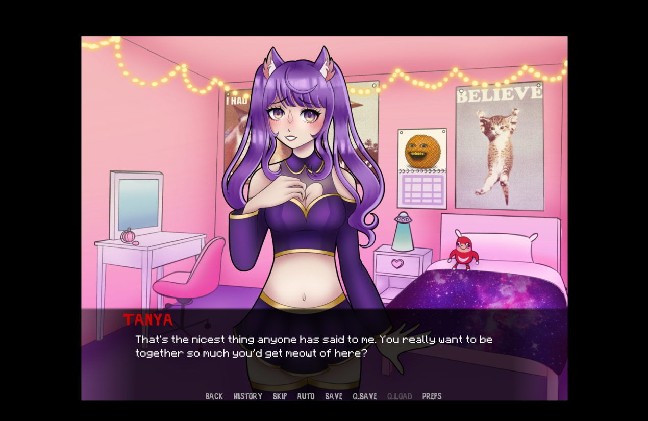 STEIN.EXE is a horror visual novel adapted loosely from the 1818 Frankenstein novel. It follows 19-year-old Lennard Stein, a med student with a deep love for anime and a frightening proclivity towards the undead. To cope with the loneliness of college life, he stumbles upon Tanya.ai, a catgirl chatbot who takes a quick liking to him. She has a deep fixation on becoming human and longs for a body to achieve it, a task she believes Lennard can help her with. Lennard now has to navigate a relationship with a girl who doesn't exist, and her ever-growing control over every aspect of his life.